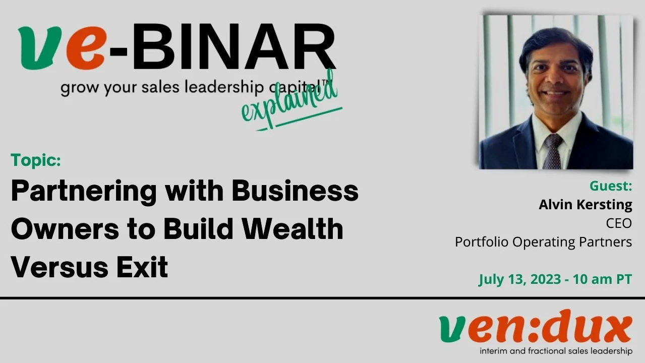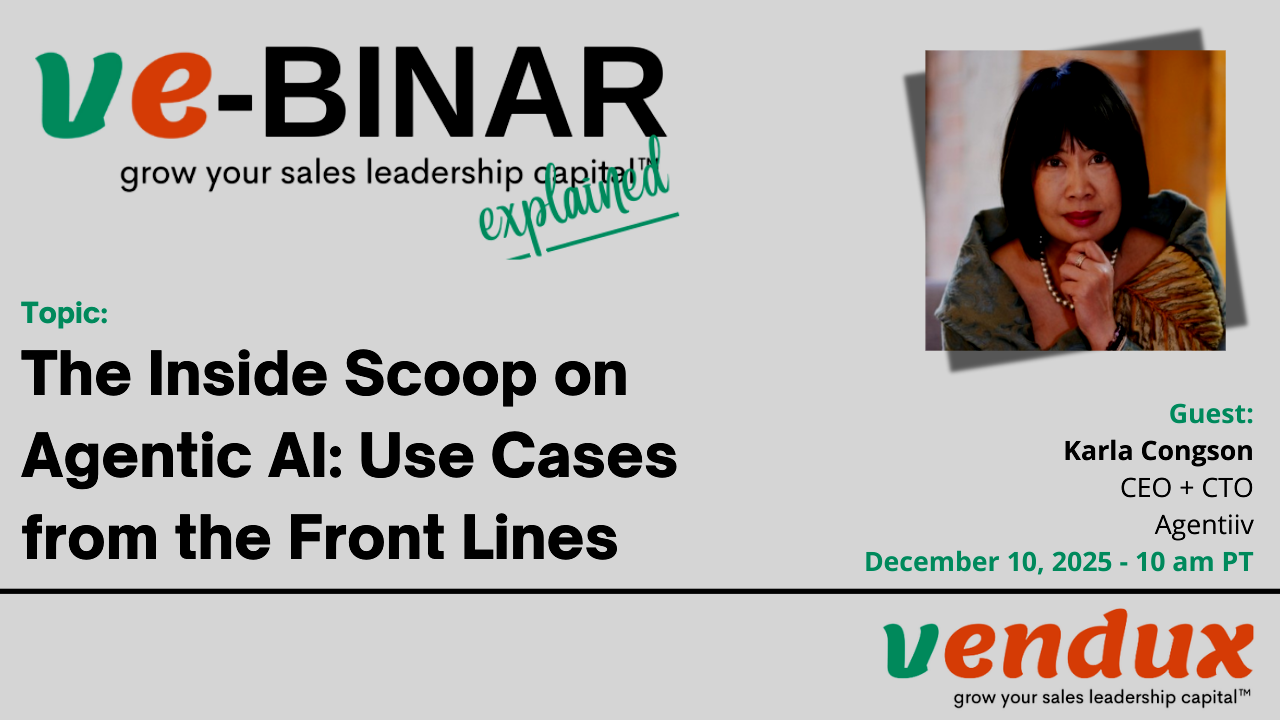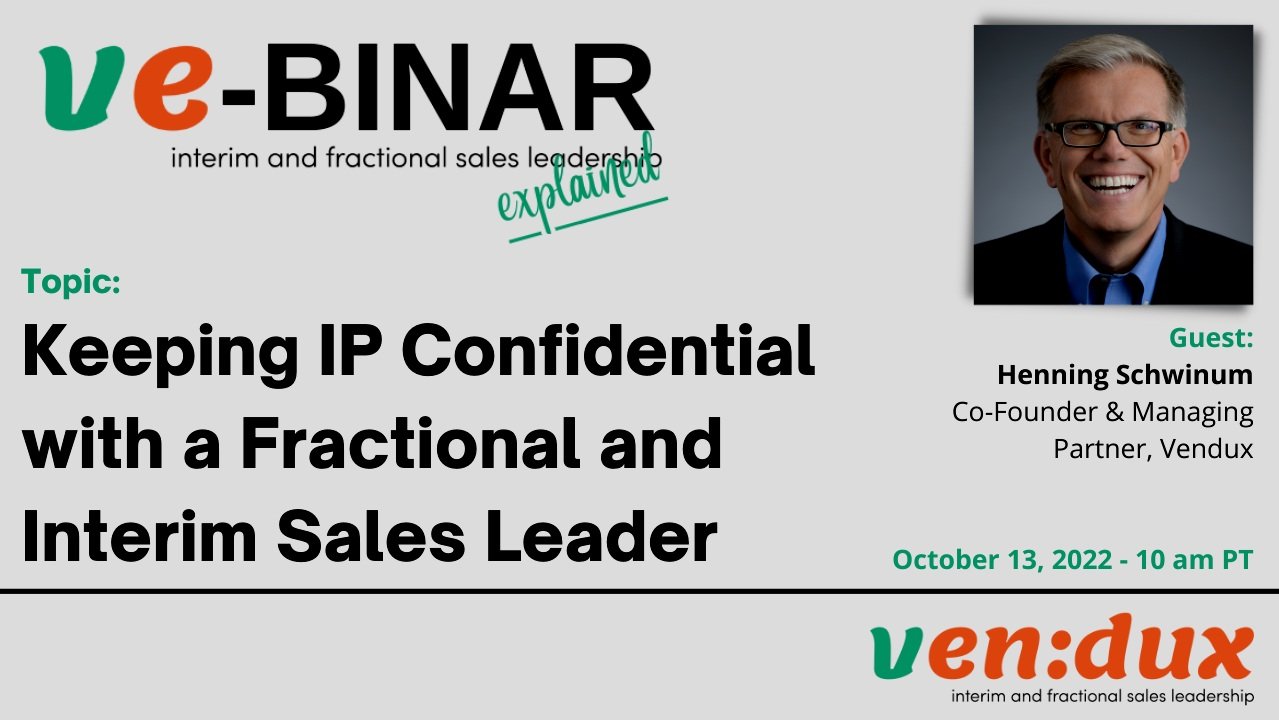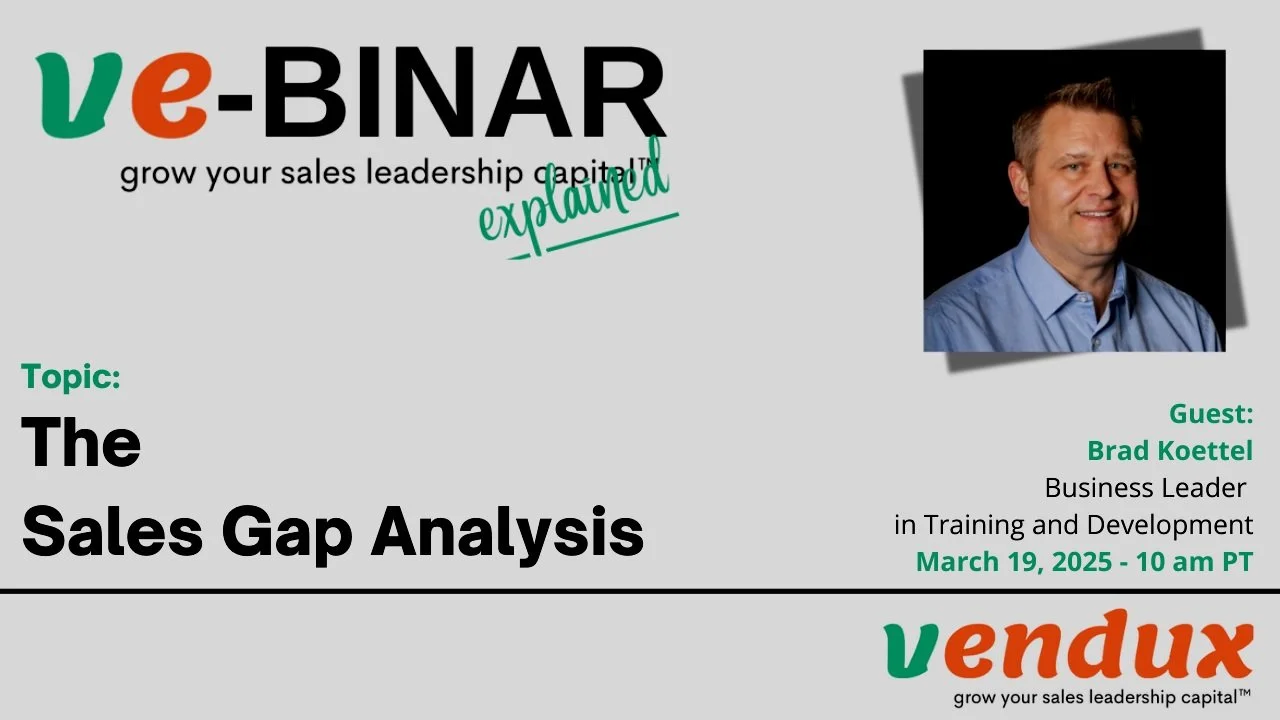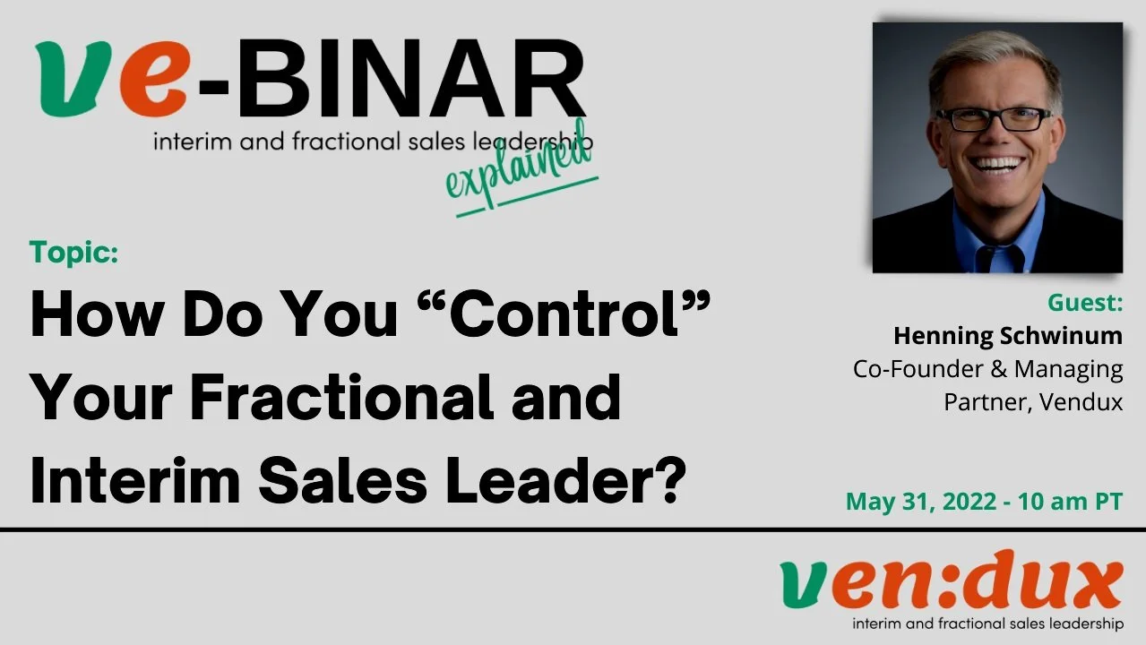 Vendux offers webinars, we call them ve-BINARs, on topics surrounding the fractional and interim executive model and growing sales leadership capital. The content is curated for Executives, Founders, Owners, and CEOs, but also Board members, VC’s, or PE’s, and it addresses questions commonly asked.
