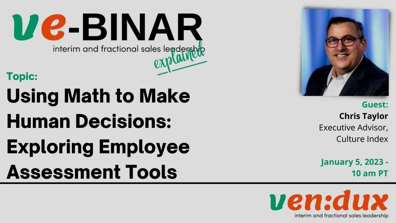 Imagine being able to hire better sales professionals, motivate them to their highest levels of productivity, and reduce turnover. All while you enjoy your well-earned vacation time. Employee assessments promise all of this and more, but often fall far short of this promise when we put them in use. Even with an assessment we like, we often find ourselves making less than ideal people decisions. Why is that? Partly this is due to the misuse and misunderstanding of the tools and their role. Every tool has limits. What if you better understood the limits and applied these tools in a way that could build sales teams with fewer headaches and more certainty. Chris will present an overview of the common employee assessments available as well as their limitations and proper use.